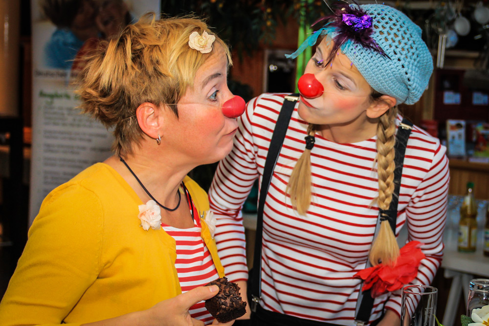 Sie geben uns Ihre Themen und wir bringen diese clownesk und spielerisch die auf die Bühne. Schauen Sie mit einem Augenzwinkern in den Spiegel. Als Kontakt- und Improvisations-Künstlerinnen versprühen wir Fröhlichkeit und Ausgelassenheit und schaffen Nähe und Vertrautheit.